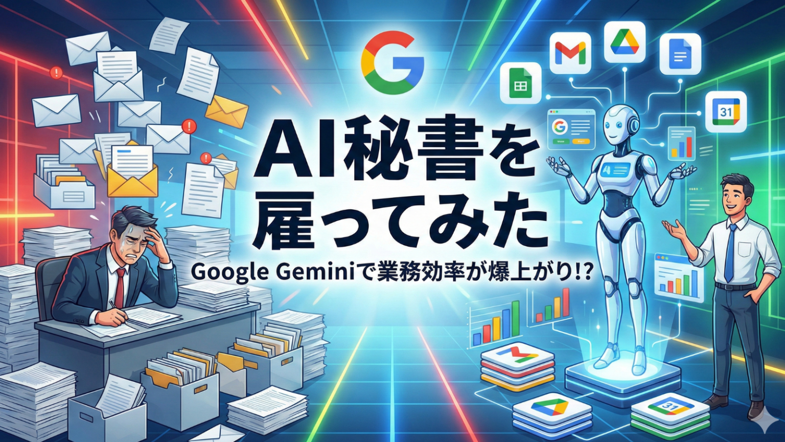 カチョー、また資料作成で徹夜ですか?顔色悪いっスよ… うう…今週だけで報告書5本、議事録8本、メール返信が溜まりに溜まって…もう限界だ。。 それ、ChatGPTに手伝って… -