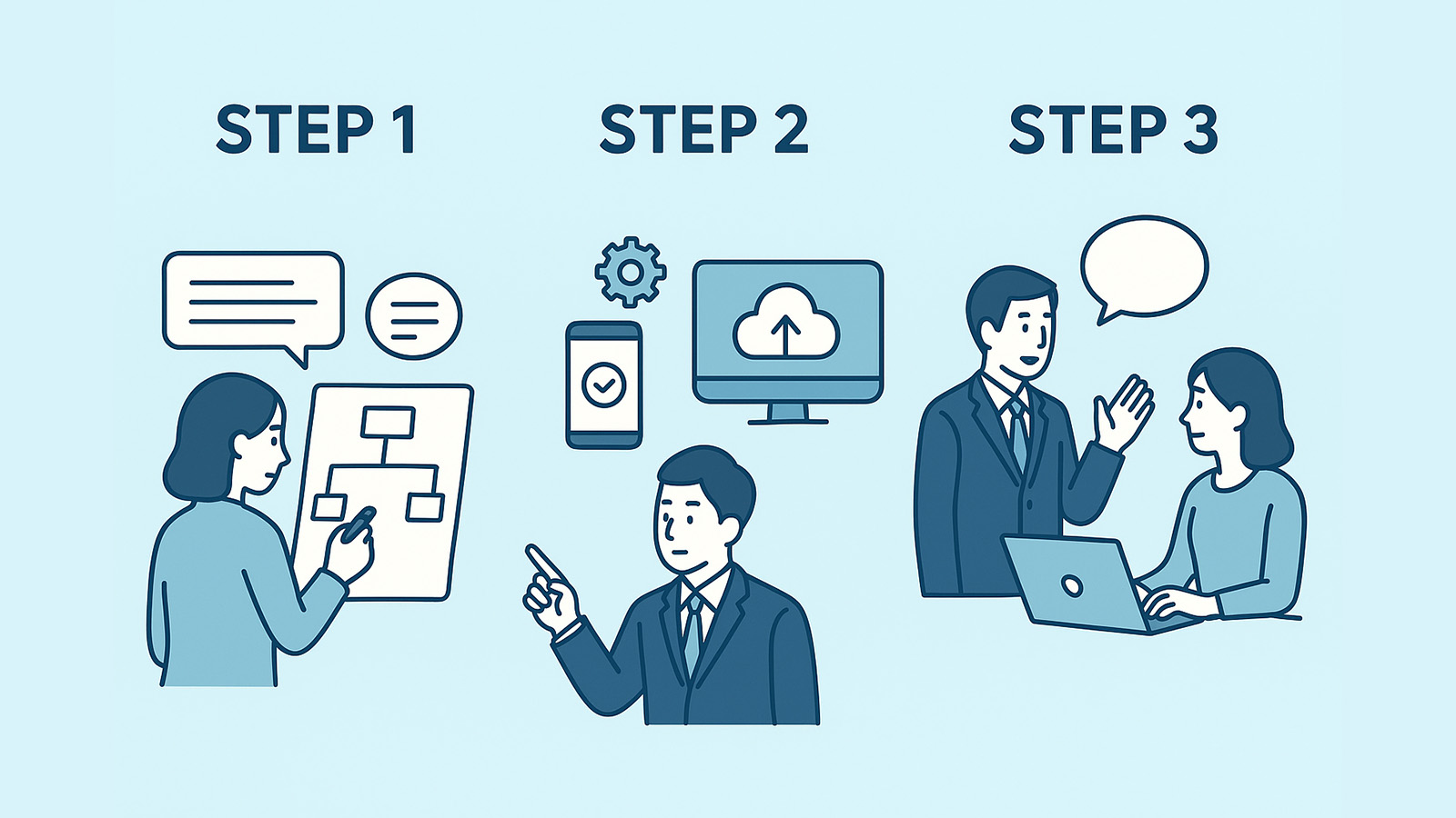 まずは、今やっている仕事の流れをじっくり振り返ることから始めましょう。どこか無駄な部分や、情報の共有がうまくいっていないところはないかを確認します。一度現場の流れを紙に書き出してみると、どこに問題があるのか見えてきますし、「何をシステム化すればいいか」が見えてきます。この棚卸しを丁寧に行うほど、その後の作業もスムーズに進みやすくなります。
